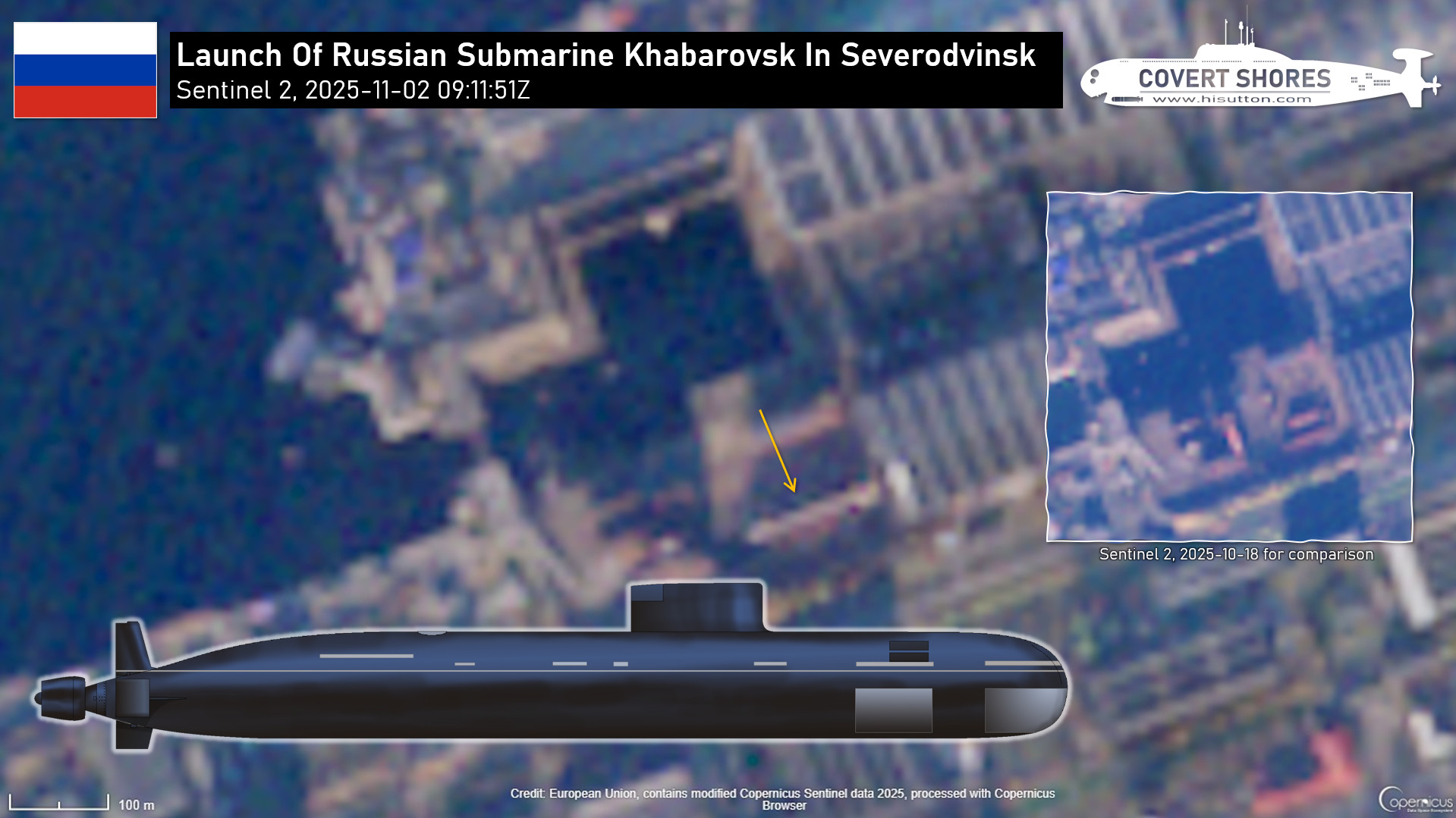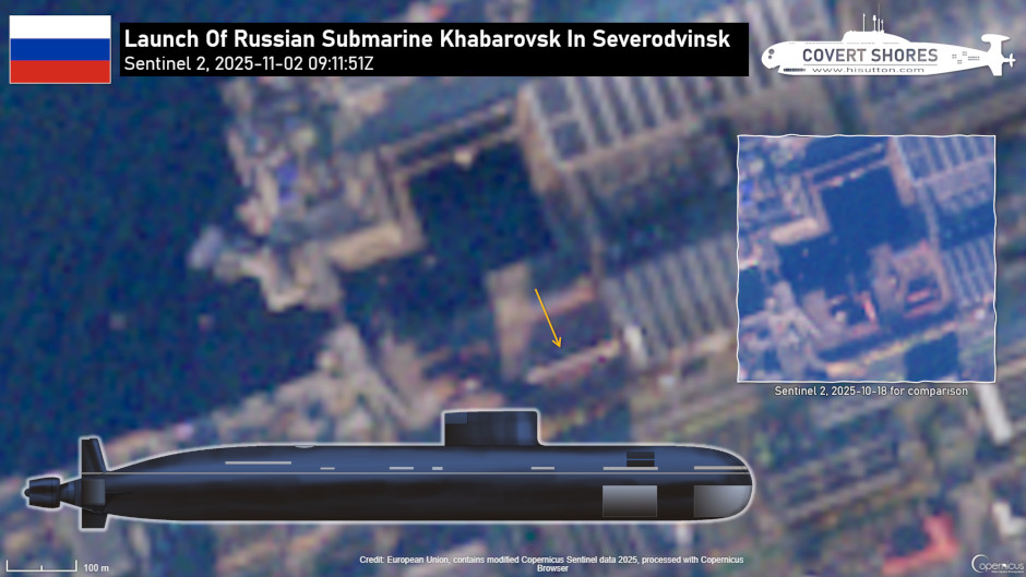 After a painfully long wait, the Russian submarine Khabarovsk has finally emerged from its construction shed in Severodvinsk. The Pr. 09851 class boat is the second Poseidon carrying submarine in the Russian Navy, following the Pr. 09852 Belgorod. Khabarovsk is a smaller submarine better optimized to the role of carrying Poseidon. The delay of several years is in part caused by a pause during the COVID-19 pandemic. But it also likely resulting from both design changes and resources being directed to the war in Ukraine.