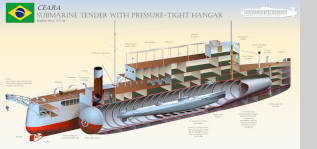From the outside the Brazilian Navy's Ceara looked remarkably ordinary. And described as a 'submarine tender', it sounded ordinary too. But on the inside the layout was almost James Bond levels of cool...