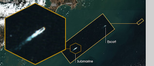 A Chinese Navy submarine, provisionally identified as a Type-094 Jin Class SSBN, is transiting the Taiwan Strait. The submarine is transiting north from the submarine base at Yulin in the South China Sea. It is surfaced and escorted by another vessel.